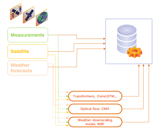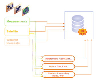 Au cœur de la prévision des ressources solaires se trouve la collecte de données météorologiques de prévision (NWP — prévision météorologique numérique), d’images satellites, d’enregistrements historiques de l’irradiance solaire et de capteurs météorologiques au sol. Ces sources de données sont essentielles pour construire des modèles de prévision et simuler le comportement des changements atmosphériques sur plusieurs intervalles de temps et à des échelles variées (locale, régionale, nationale…). Les données collectées sont vastes et diversifiées, englobant des facteurs tels que la couverture nuageuse, les conditions atmosphériques, la situation géographique…